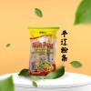 平辽粉条 这种产品由平辽出产的洁净葛根淀粉制成,确保使用者的安全和质量。此外,当煮熟时,粉条的纹理美观,即使长时间烹煮也仅仅是变软而不会变烂,不黏连,松散而酥脆,尤其是散发出诱人的香气。 与其他粉条的白色或乳白色不同,平辽粉条以淡绿色的长丝吸引人眼球,长度约为25-30厘米,纤细精致,不仅美观,还反映了产品的质量和安全。这种淡绿色是原生态加工葛根的本色。 平辽粉条可用于煮汤或制作炒菜、拌菜。典型的做法有:炒鸡肠粉条、炒海鲜粉条(如蛤蜊、蛤仔、虾、蟹等),也可与各种调味料结合制作特色汤品或拌菜。粉条质地韧性十足,不易烂,使菜肴更加美观和诱人。